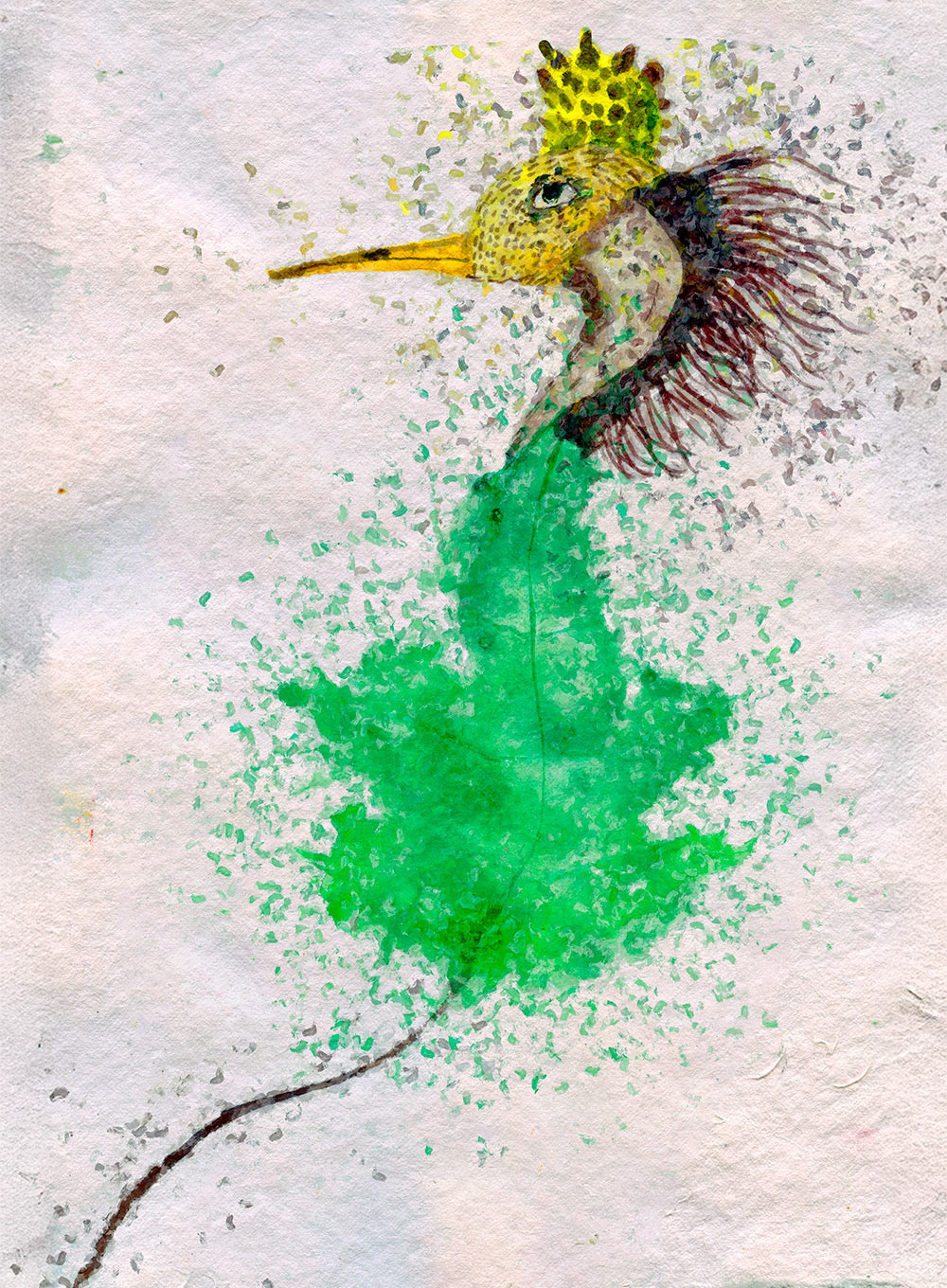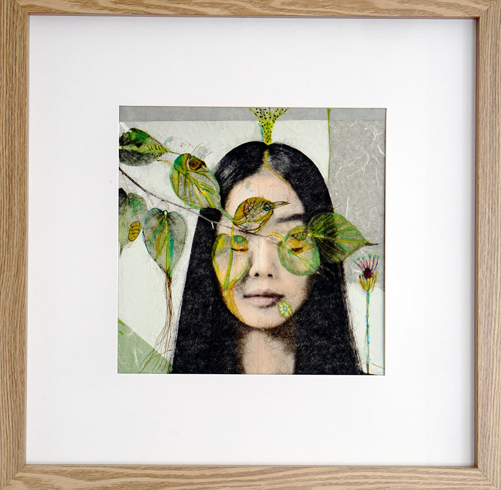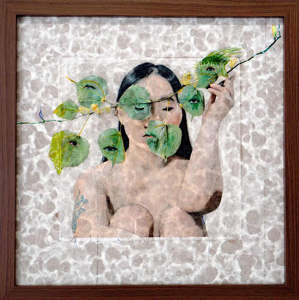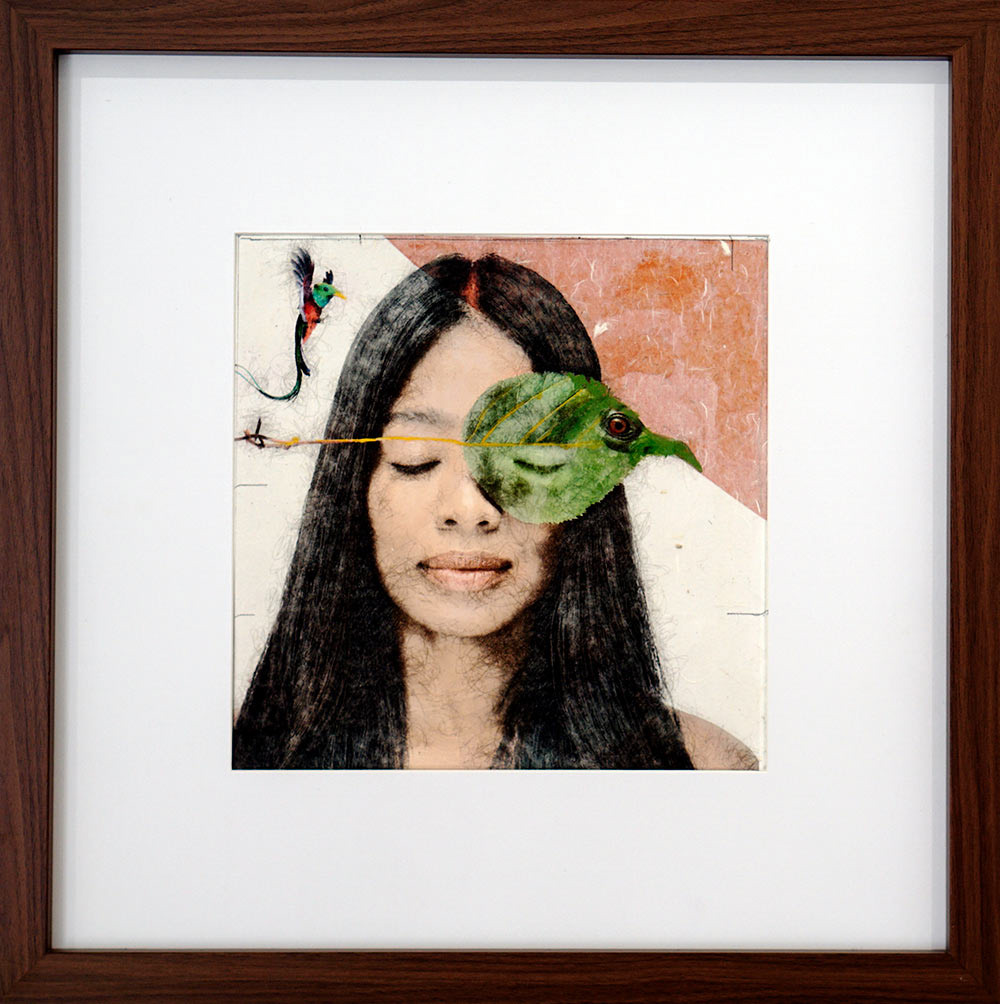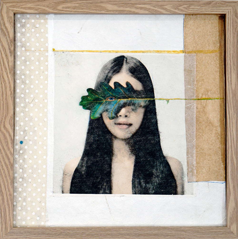 Collages digitaux, encres et peintures à la cire froide