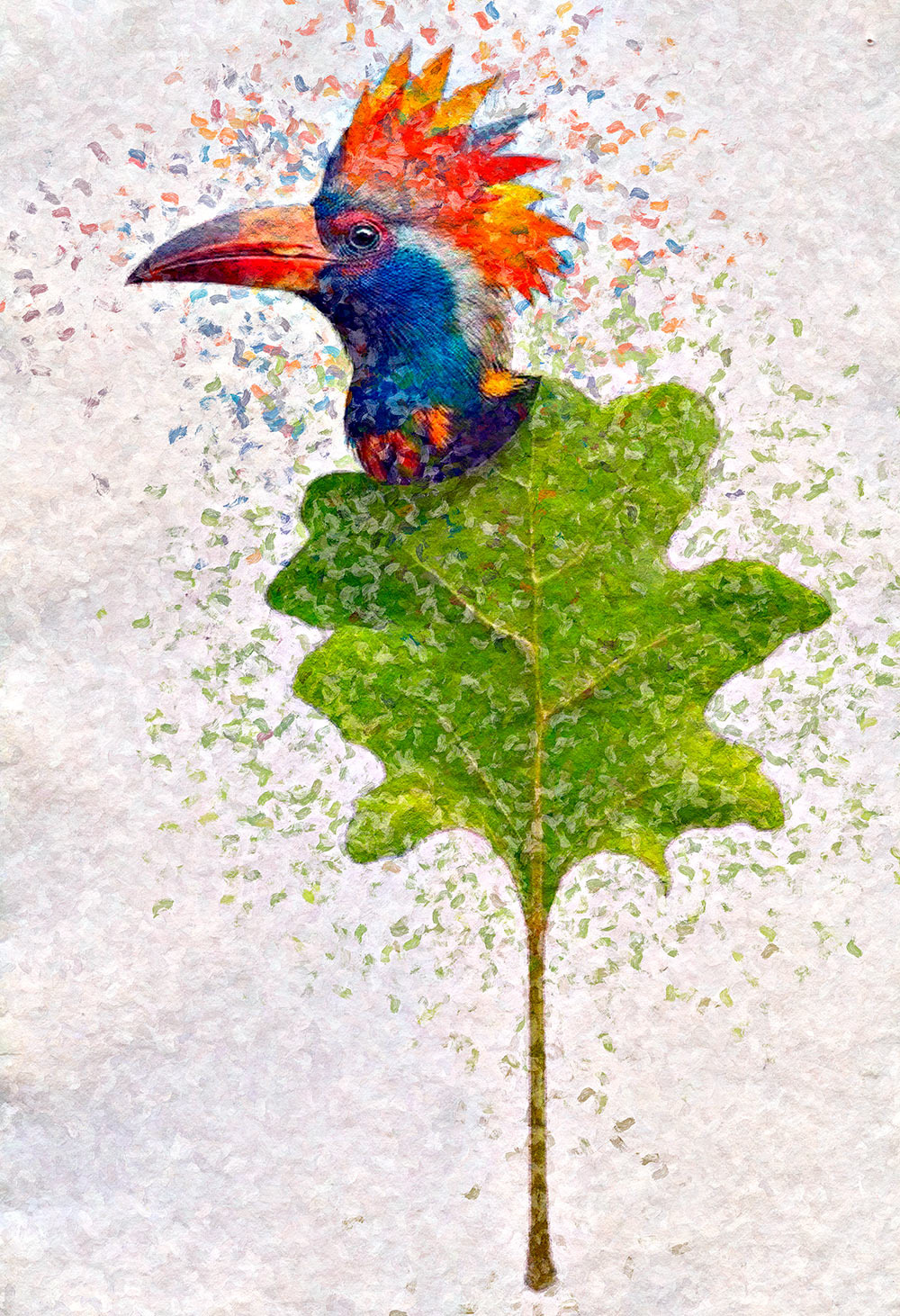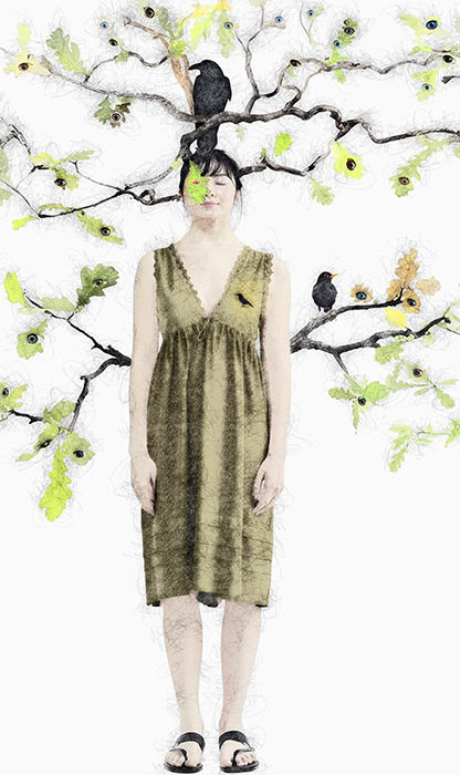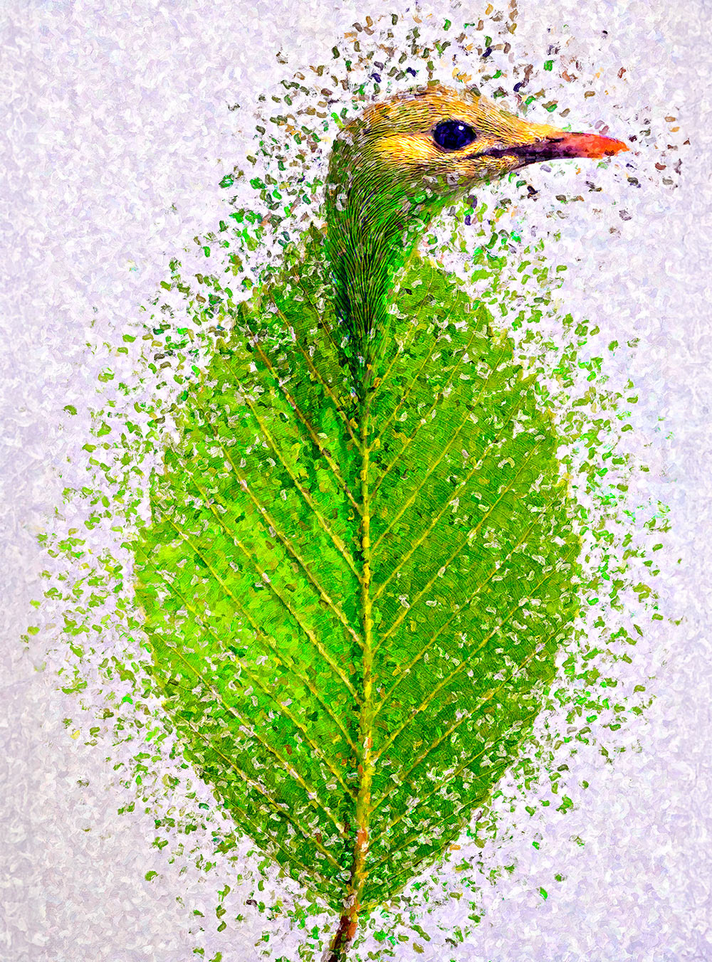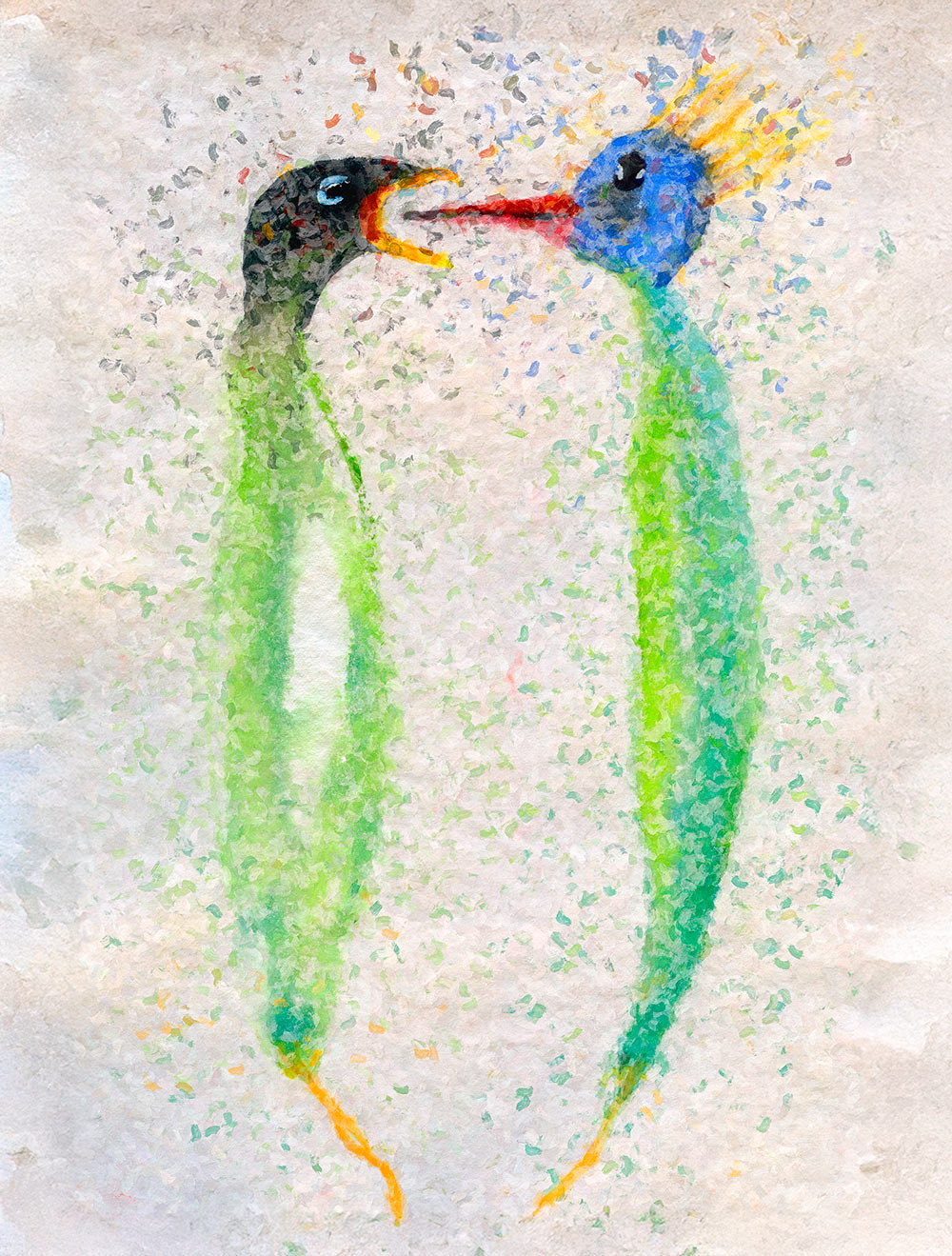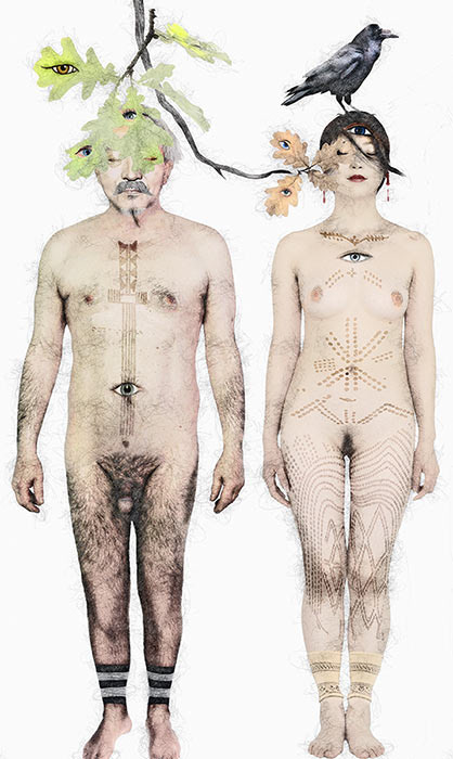Collages digitaux, encres et peintures à la cire froide